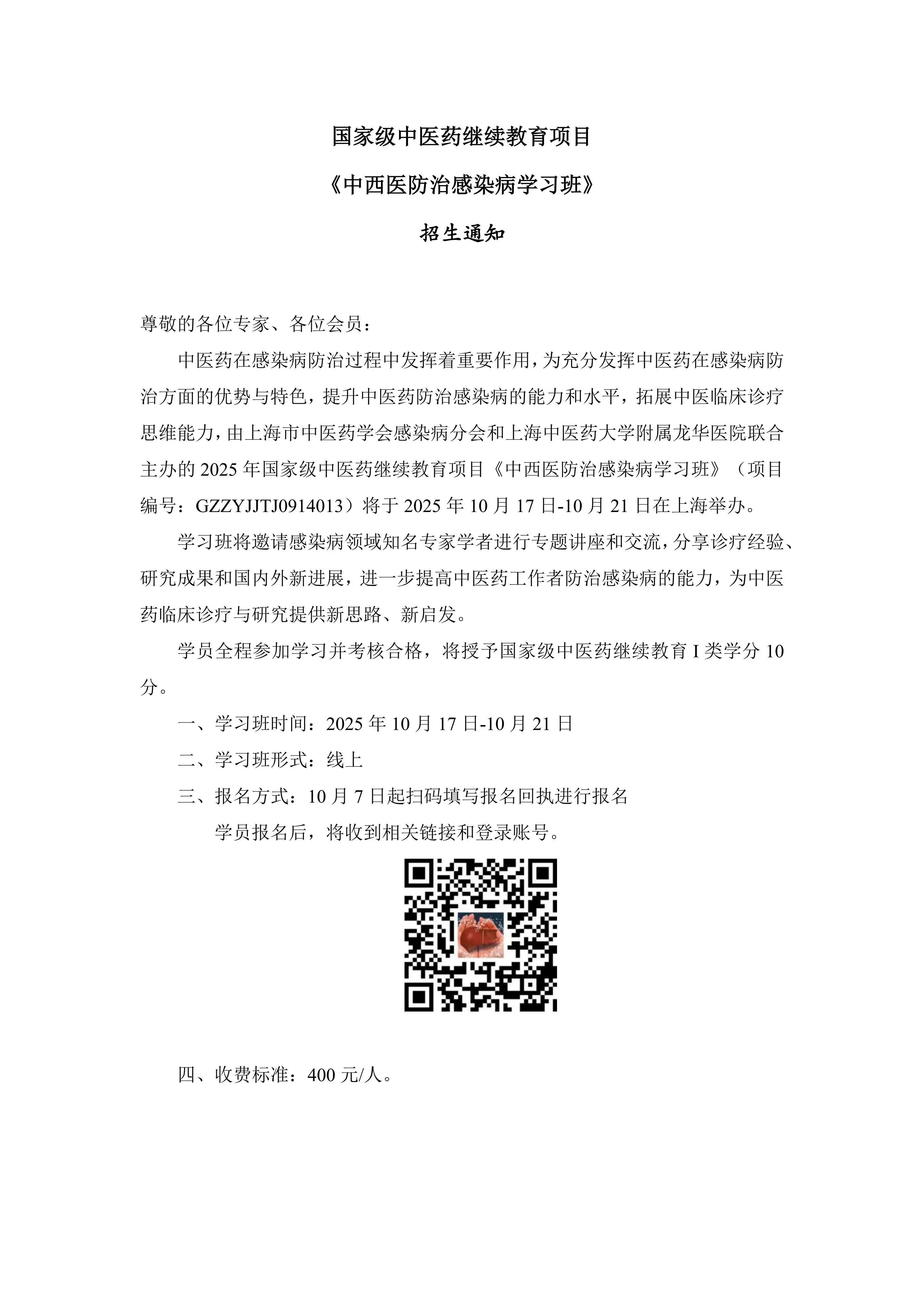 国家级中医药继续教育项目《中西医防治感染病学习班》招生通知.pdf