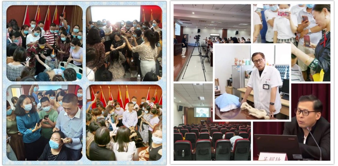 此次培训共计10天,分2期进行,各位专家为学员们准备了丰富多彩的培训内容:沈克艰教授为大家介绍了刮痧疗法治未病的应用、带状疱疹及其后遗症的针灸治疗;倪欢欢主任医师为大家介绍了美容祛斑的中医疗法、刮痧养生技术在社区的应用;张峻峰副教授为学员介绍杵针、滚针及热敏灸疗法,并详细介绍了上海市24项中医药适宜技术;朱金柳主任医师为学院介绍了中医功法防治常见疾病。培训中还以远程视频的形式由吴耀持教授介绍了我国著名针灸流派“陆氏针灸”及其腰扭伤特色诊疗技术,由陈文华教授为学员培训肌内效在社区健身活动中运动损伤康复的运用。培训中理论与操作相结合,模拟和实践相交替,让各位学员在短时间内尽可能掌握所学的技能和方法,并运用到临床实践当中去,提升临床技能,努力为德宏州百姓提供更优质的医疗服务。