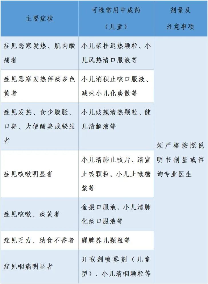 注意:上述对症干预中成药选择其中一个品种,按照说明书剂量服用或在医生指导下使用,一般3-5天或症状消失即停止用药。