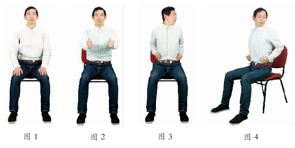 1.安坐凳椅,两腿平放,两脚分开,头身正直,两手轻轻扶按大腿(见图1)。